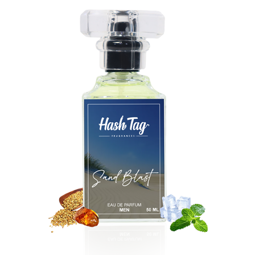 Experience the regal Charm of Hash Tag Sand Blast Fragrance. Its top notes of Mint & Lemon set the tone with a Burst of Freshness, while the Heart Notes of Coriander & Hybrid Tea Rose of sophistication and depth.